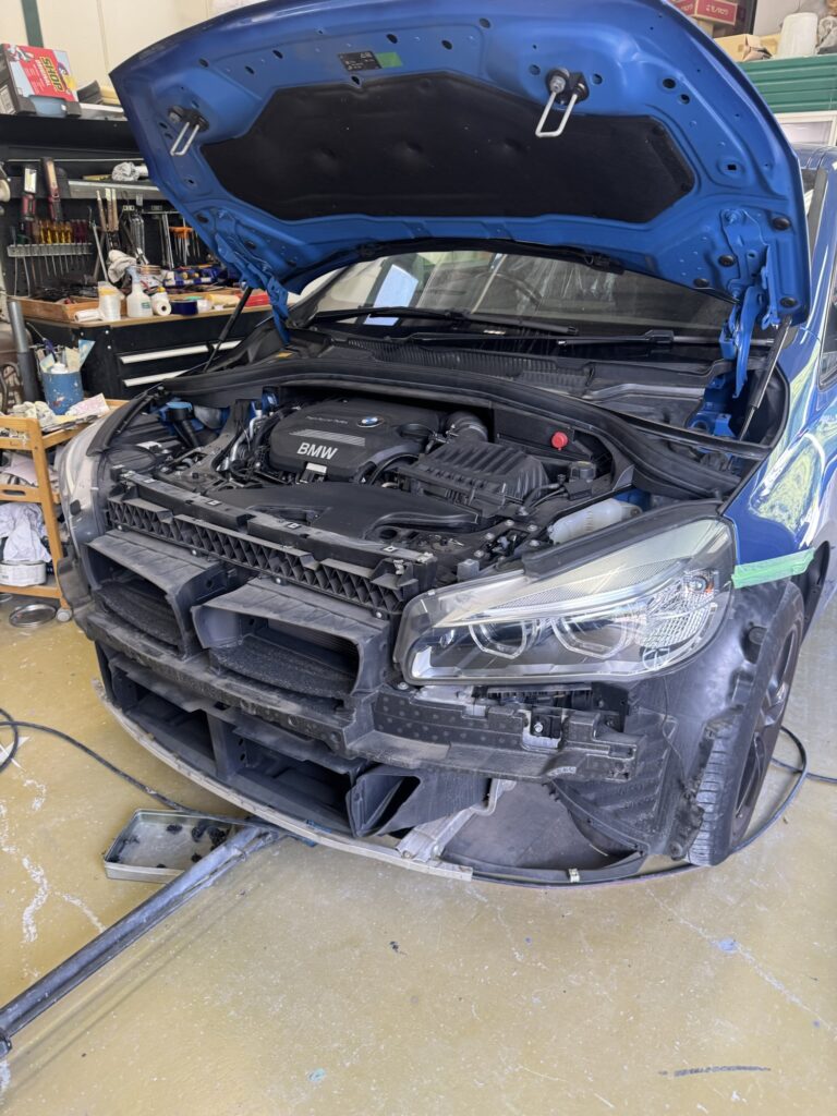 今回はBMW218iのフロントバンパー修理になります!