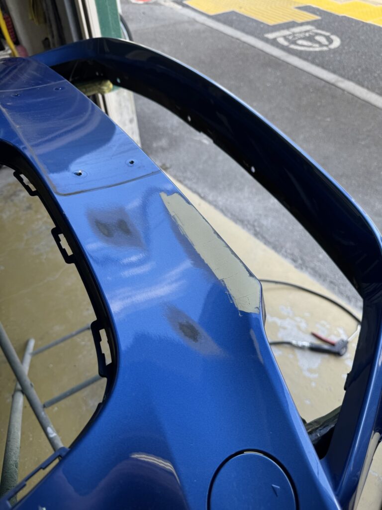 損傷は少し傷付いてしまっている程度でしたが、作業方法としてはバンパーを外して一本塗装となります。